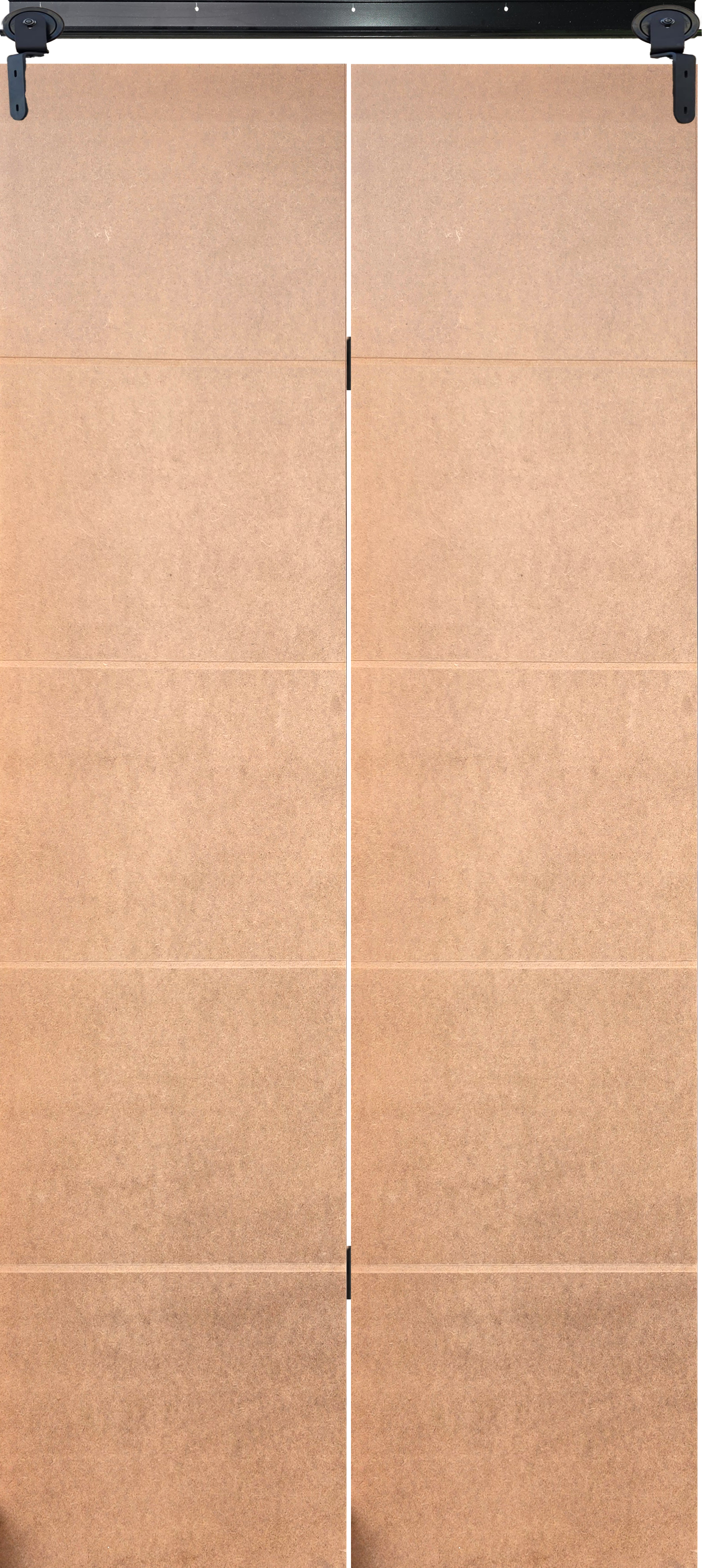 Economy Light Duty Bi-Fold Barn Door Solution Maximize your floor space without breaking the budget. Our Economy Light Duty Bi-Fold Barn Door kit is designed for standard openings of 1000mm Wide x 2100mm High. This is the perfect DIY solution for closets, pantries, or room dividers where a lighter door is preferred. These doors utilize a hollow core construction with a high-quality skin, featuring 4 Shallow Horizontal Grooves for a subtle, contemporary look.